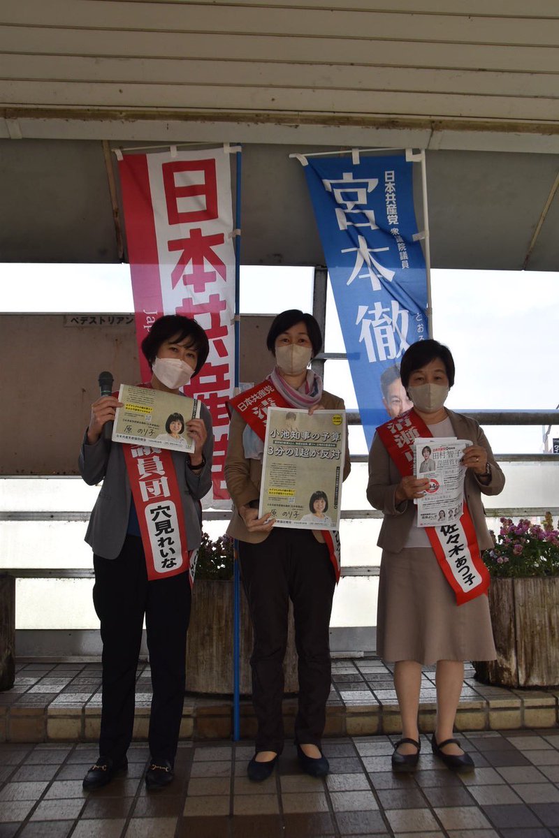 清瀬駅北口朝のご挨拶、今日も市民の皆さまに訴えました。沖縄が復帰して52年、自衛隊基地の面積が5倍に。