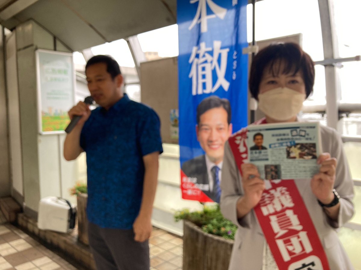清瀬駅北口、朝のご挨拶にて #宮本徹…
