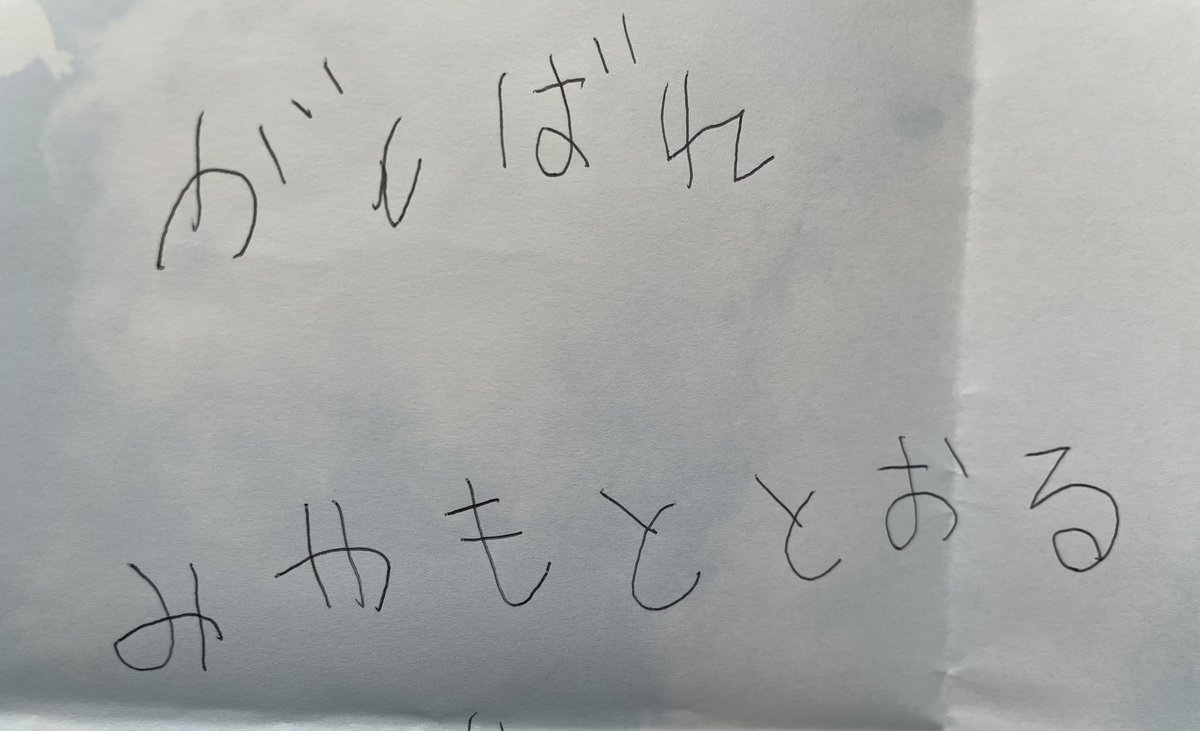 字の練習というと「やらないよ」なので、「おてがみかいてね、みやもととおるさんに」となだめて、滅多に字を書く生活をしていないことを軌道修正。30テイク書いたのは偉かった💦最初の5テイクはやっぱり読めなかった💦本番頑張れるといいな。みやもとさんに渡す約束したので渡さなければ(呼び捨て命…