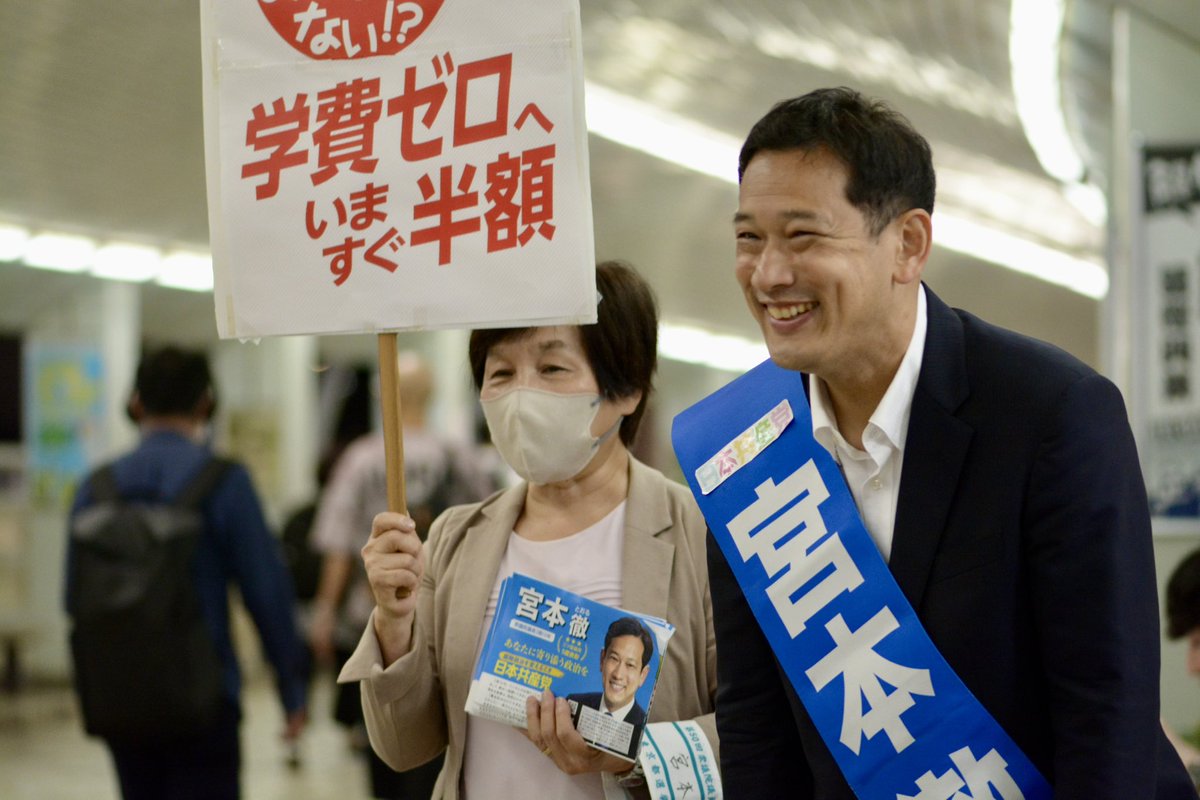 宮本徹衆議院議員候補の存在を遠くまで伝えたくて、デッキの人にも思いっきり手を振りました。こんなにわたし達の想いや要望をしっかり国会に届ける政治家がいることを知ってほしいから。