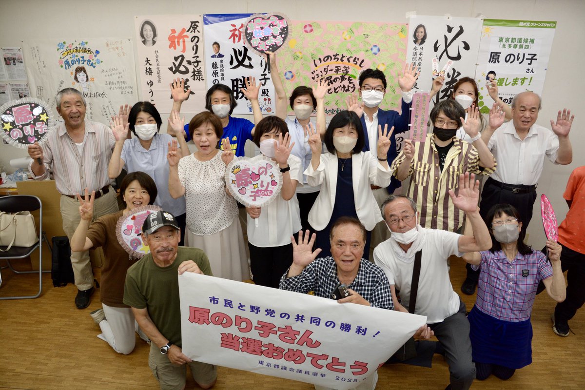 RT @hsuogob: 都議選・北多摩4区(清瀬市・東久留米市)で、日本共産党の原のり子さんが3選を果たすことができました。みなさん、ありがとうございました。「生きづらい社会をかえよう」とまっすぐに訴えて勝てたことがうれしいです。