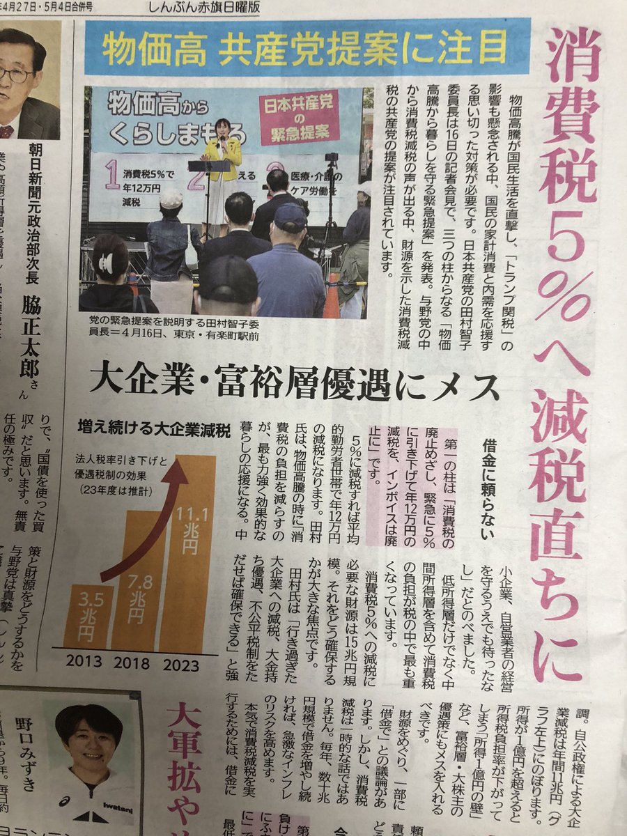 本日、近所の方に #しんぶん赤旗日曜版 (写真)を購読していただきました。