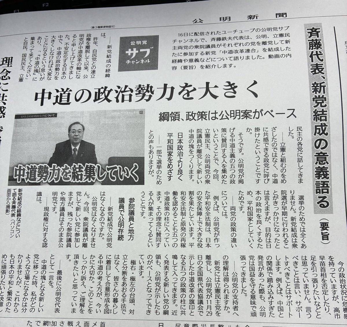 RT @koike_akira: 今朝の「公明新聞」より。…