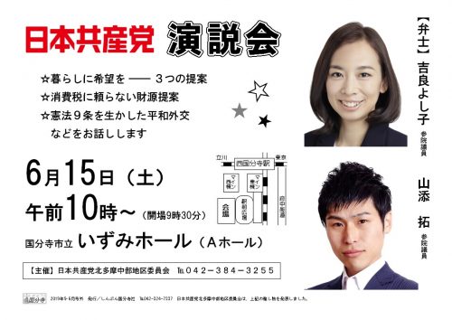 6月15日(土)午前10時から、国分寺市いずみホールで