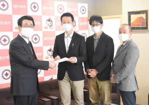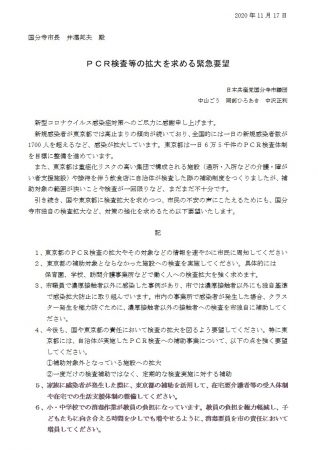 11月17日に、PCR検査等の拡充を求める緊急要望を市長に提出しました。(要望書の受け取りは橋本副市長)