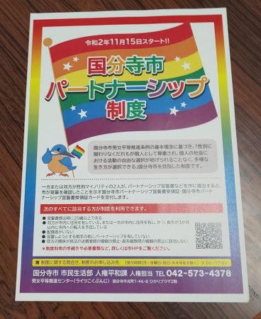 11月15日から国分寺市パートナーシップ制度が始まりました!