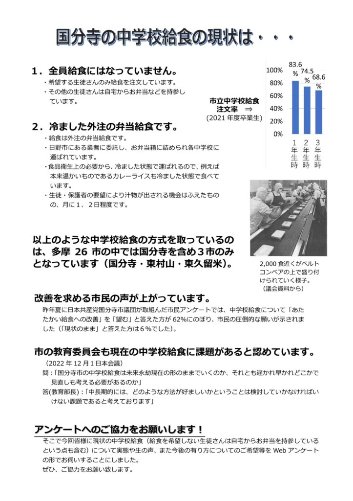 #国分寺 市の #中学校給食 は希望者のみの外注の冷めた弁当給食。