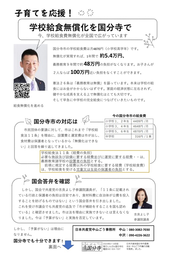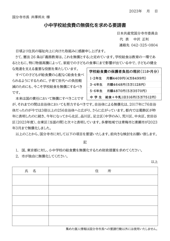 いま、無償化を求める署名活動にも取り組んでいます。市民の世論の声が政治を前に進める大きな力になります。