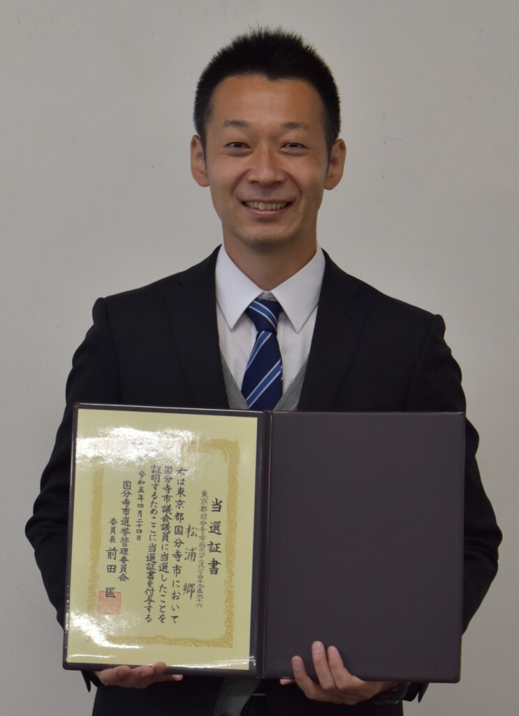 4月23日投開票で行われました国分寺市議会議員選挙に、1947票(11位)で当選させていただきました。