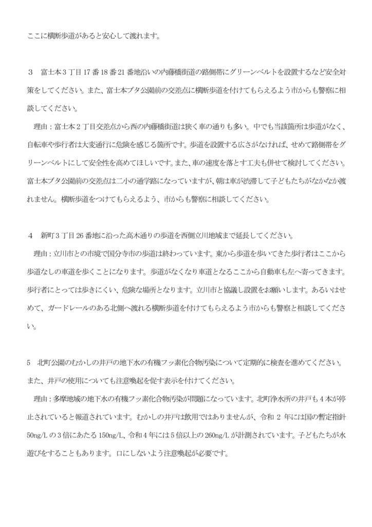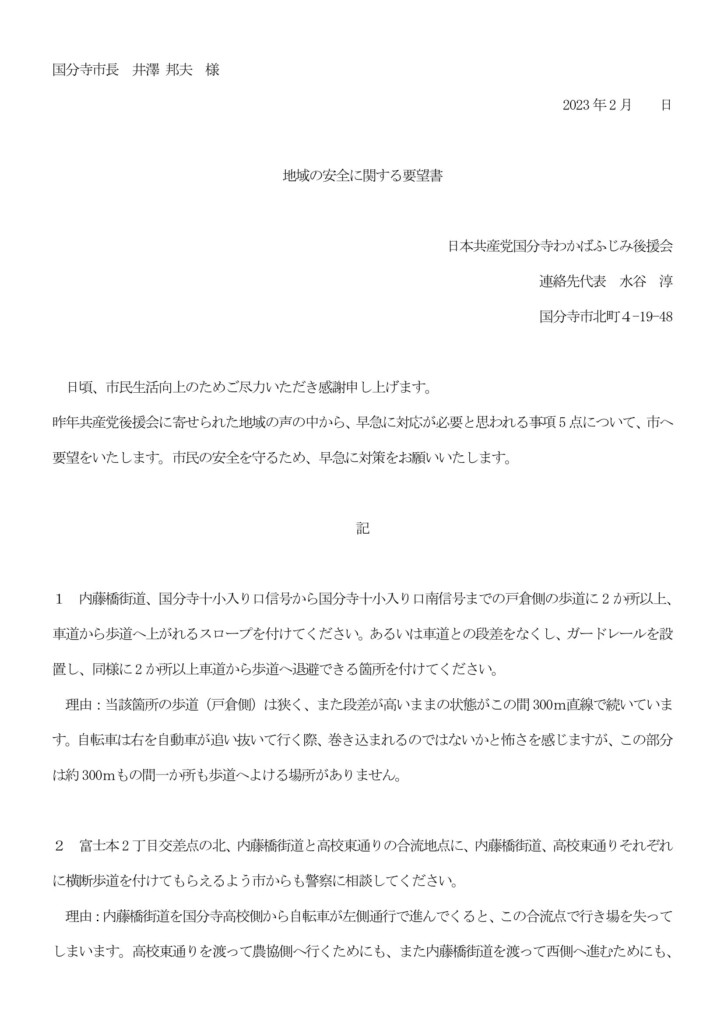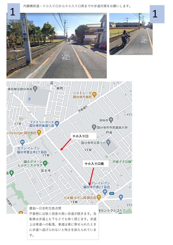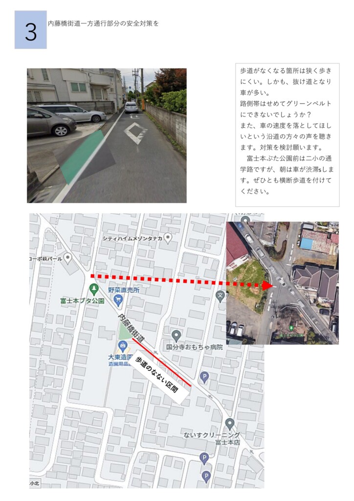 自分でも気付いた箇所は担当に改善を伝えていますが、今回は市民から寄せられた危険な個所を整理して要望しました。