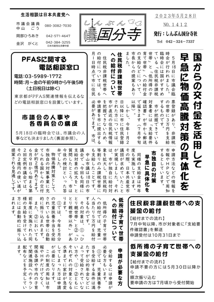 (住民税非課税世帯への3万円給付、所得の子育て世帯への児童一人当たり5万円給付)