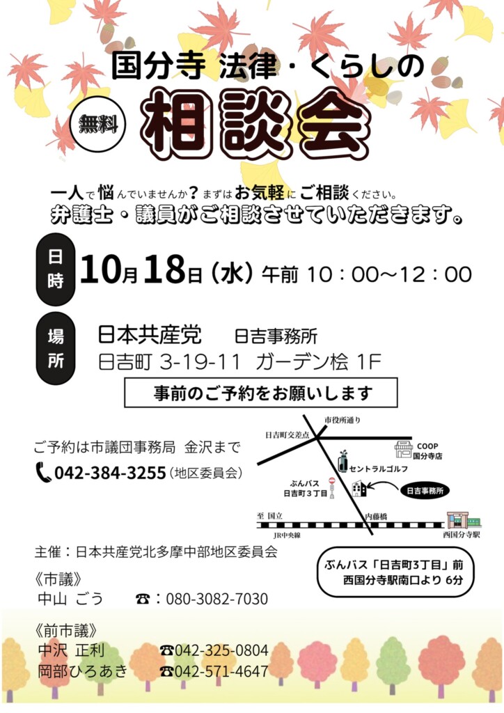 なお、都合の悪い方には別日で相談をお受けいたしますので、あわせてご連絡ください。