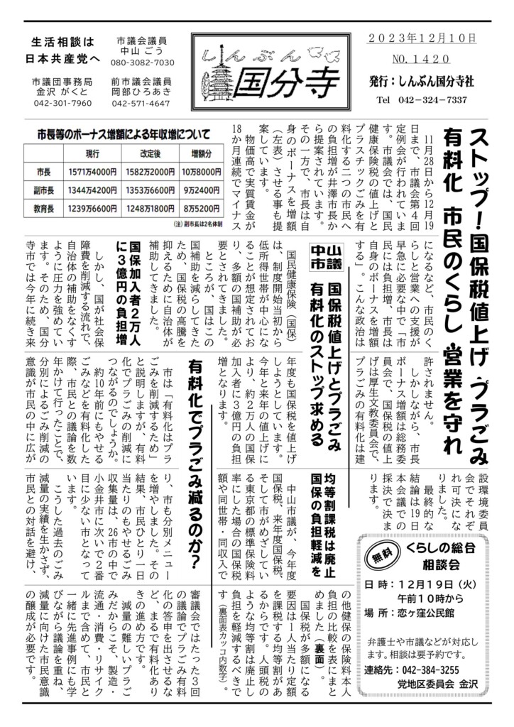 ありえません!! 国保税値上げにプラごみ有料化の一方で市長のボーナス増額!?