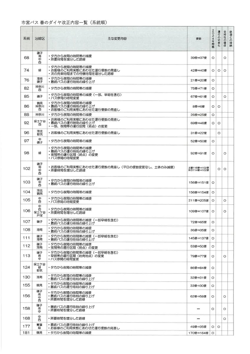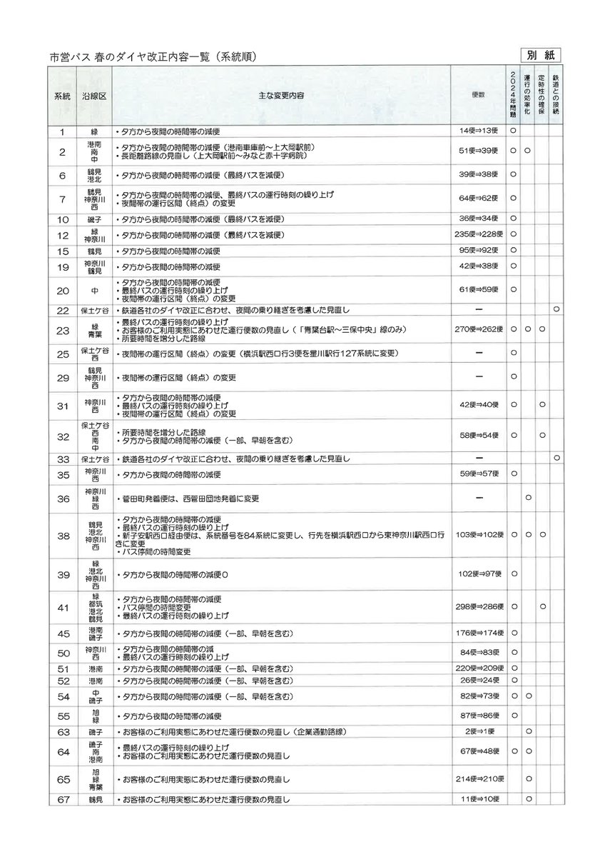 RT @furuyayasuhiko: 横浜市の市営バスがこの4月から290便もの大幅減便する詳細が明らかに。