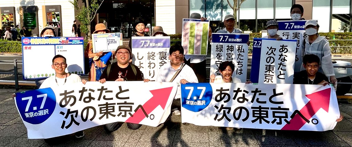 「神宮外苑再開発、賛成?反対」のシールアンケートにとりくみ28人が反対、賛成は1人でした。駆け寄ってきた20代女性は「わたしこの問題本当に怒ってるんです!蓮舫さん入れます!」と。勝ちましょう!
