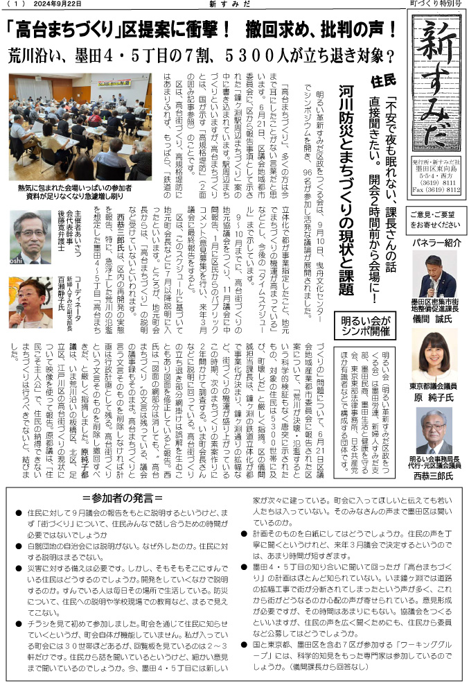 RT @jcpsumida: 墨田の河川防災、まちづくり問題を特集した「新すみだ」が発行されました。