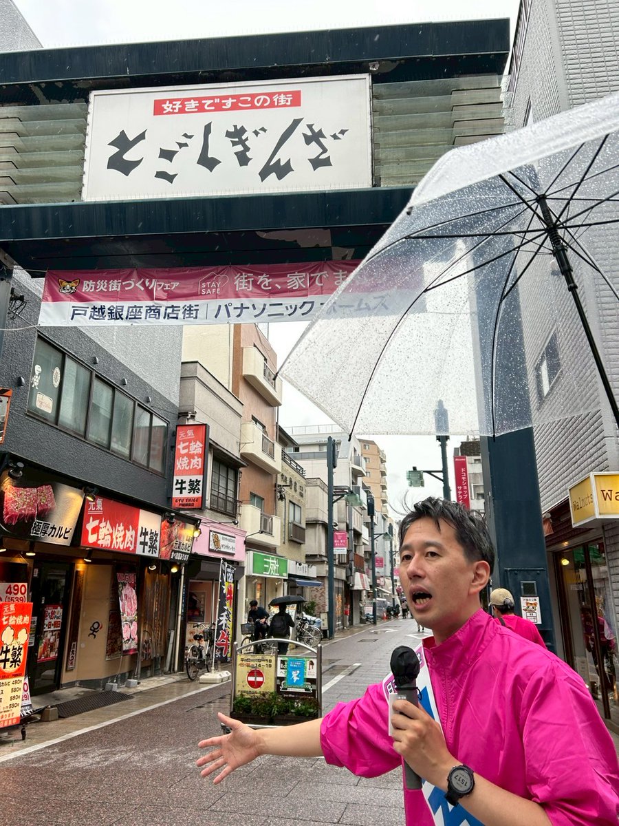 RT @tamioshiraishi: 雨が振ってきてしまいましたが、戸越銀座商店街を歩いて訴えています。