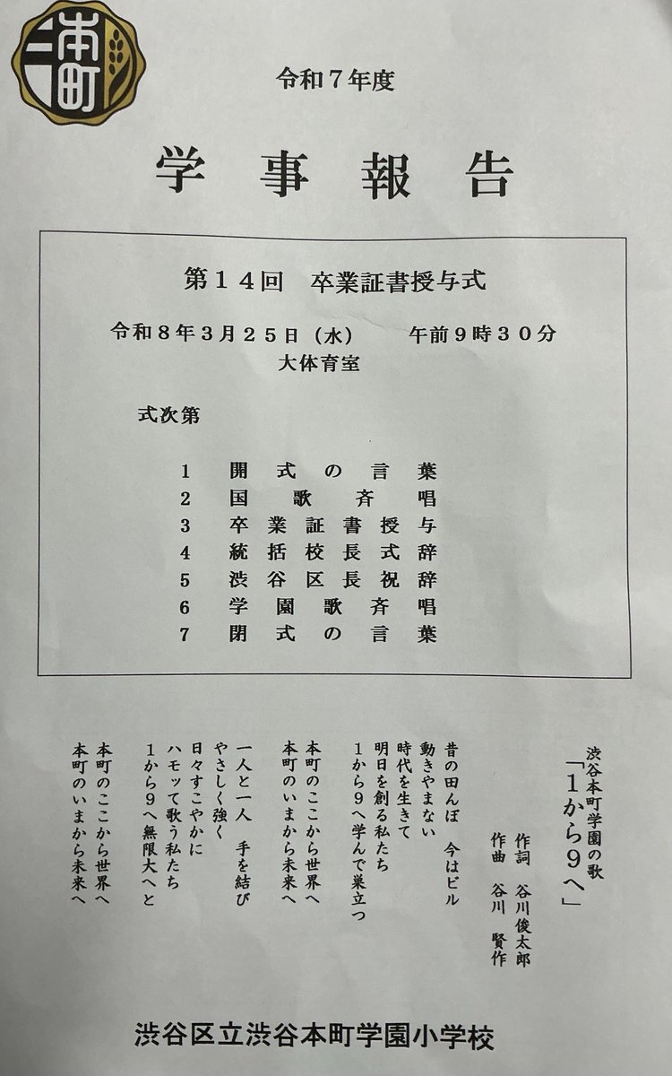 本町学園小学校の卒業式に出席しました。115人の卒業生は、コロナ禍でのスタートでしたが6年間たくさんの経験と学びの中で成長してきたことが伝わりました。式の後の在校生との対話と合唱は晴れやかで、立派でした。これからも応援しています。