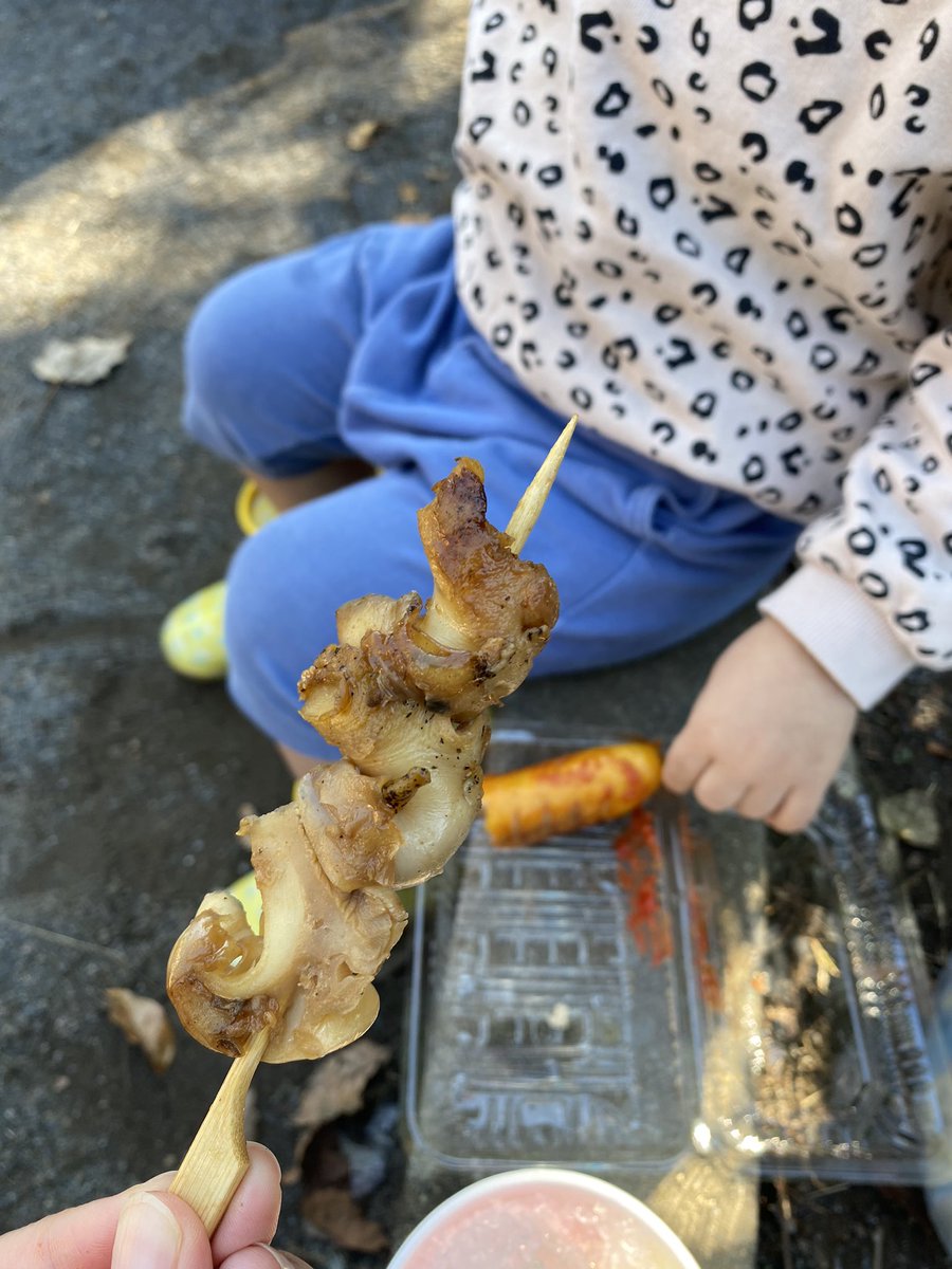小茂根2丁目町会の防災訓練→パステル宮ノ下のおまつり→お祭りでゲットした貝串を大山公園で乾杯→すくすくまつり