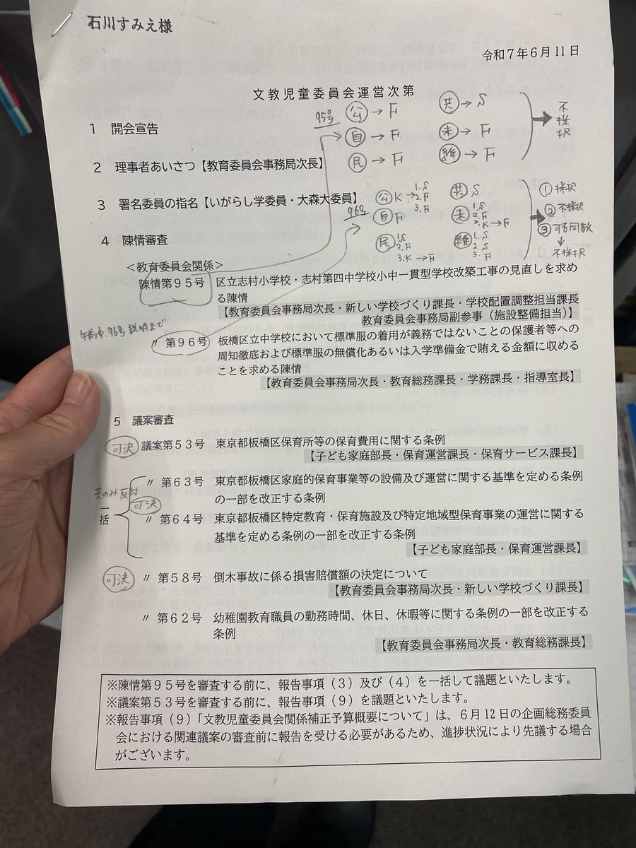 写真には書いてないですが、建物の無償譲渡の議案は原案可決。あしたは最後の議案から審議スタートです
