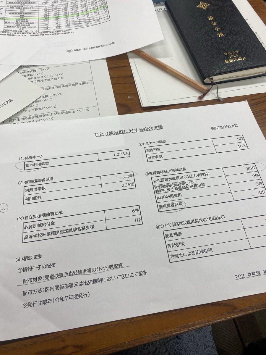 へとへと!!!!予算総括質問でした。とりあえず、こんな資料を手元に用意していました。