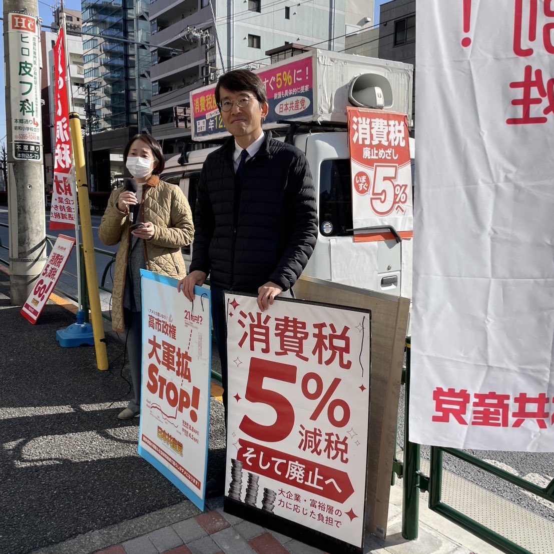 今日の午前中は、福手ゆう子都議と区内各所で街頭宣伝を実施!