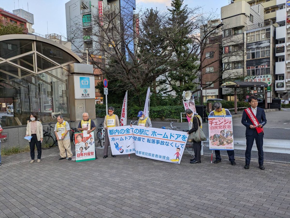 秋の訪れを感じる、総選挙公示直前の3連休初日。駒込駅前で視覚障害者後援会のみなさんや福手ゆう子都議と一緒に街頭宣伝!