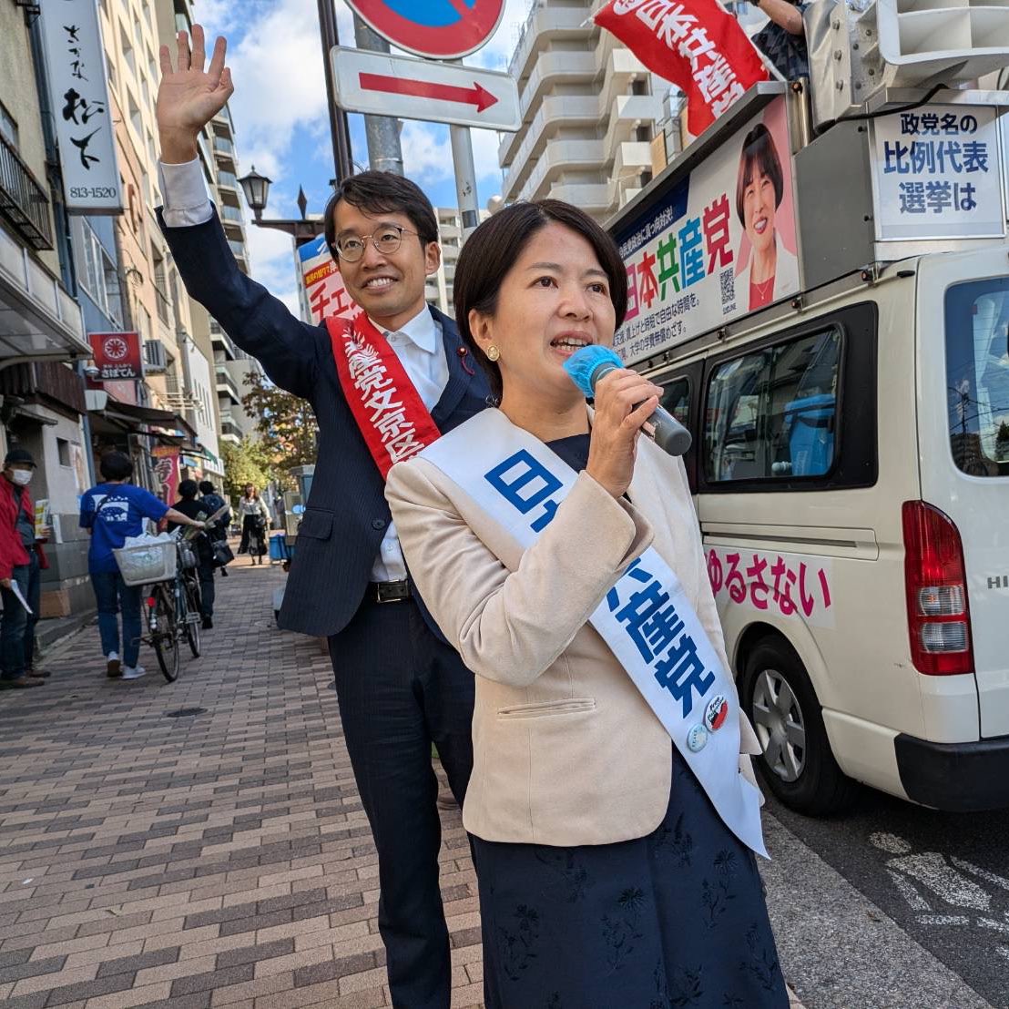 賃上げと労働時間短縮で希望の持てる社会を実現しようと訴え、激励や手振りの応援もありました。比例東京ブロック2議席絶対確保と更なる議席増へ!