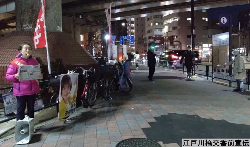 25日 文教委員会。江戸川橋交番前夕方宣伝