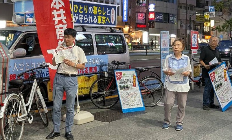 8日 茗荷谷駅前で環状3号線計画の廃止訴え