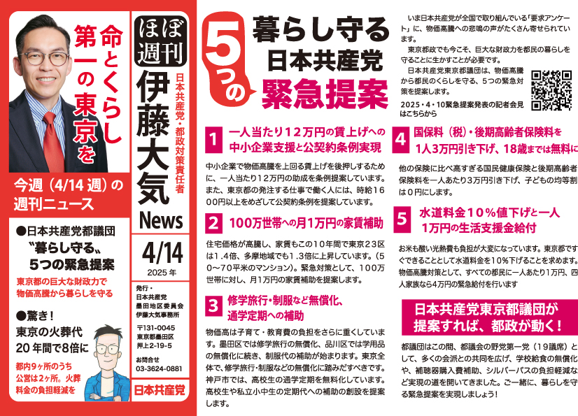 暮らし守る5つの緊急提案