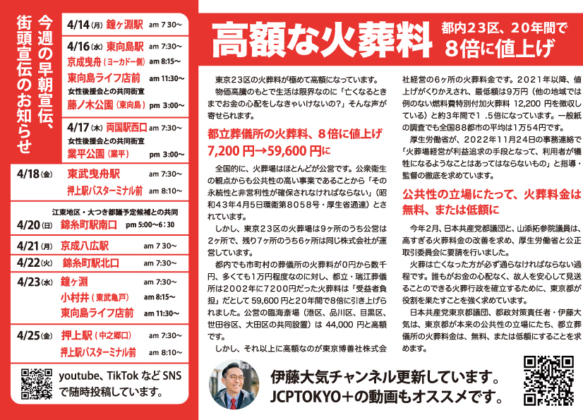 6月14日(土)午後5時半~ 錦糸町駅北口に小池晃書記局長・参議院議員が来て訴えます。私もいっしょに訴えます。 FacebookFacebookXXLINELine