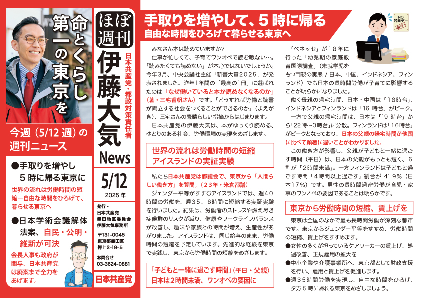 6月13日にスタートした都議会議員選挙戦は、あっという間に投票日をむかえました。 私、伊藤大気は、墨田選挙区でただ一人の野党候補として、立憲民主党や新社会党からも応援をいただいて選挙戦をたたかい抜いてきました。とりわけ立 ...