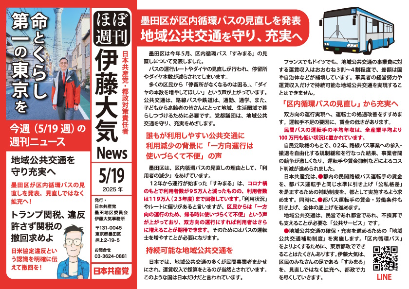 6月13日にスタートした都議会議員選挙戦は、あっという間に投票日をむかえました。 私、伊藤大気は、墨田選挙区でただ一人の野党候補として、立憲民主党や新社会党からも応援をいただいて選挙戦をたたかい抜いてきました。とりわけ立 ...