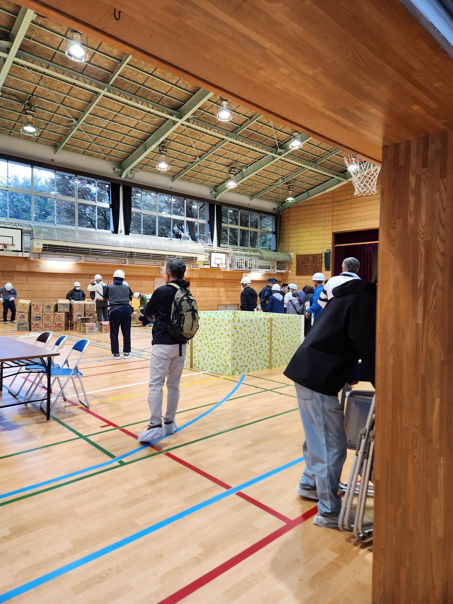 地元自治会と団地管理組合や学校や建築関係の方も交えての防災訓練に朝から参加。今年は、避難所設置訓練と炊き出しや避難スペースなどの設置です。