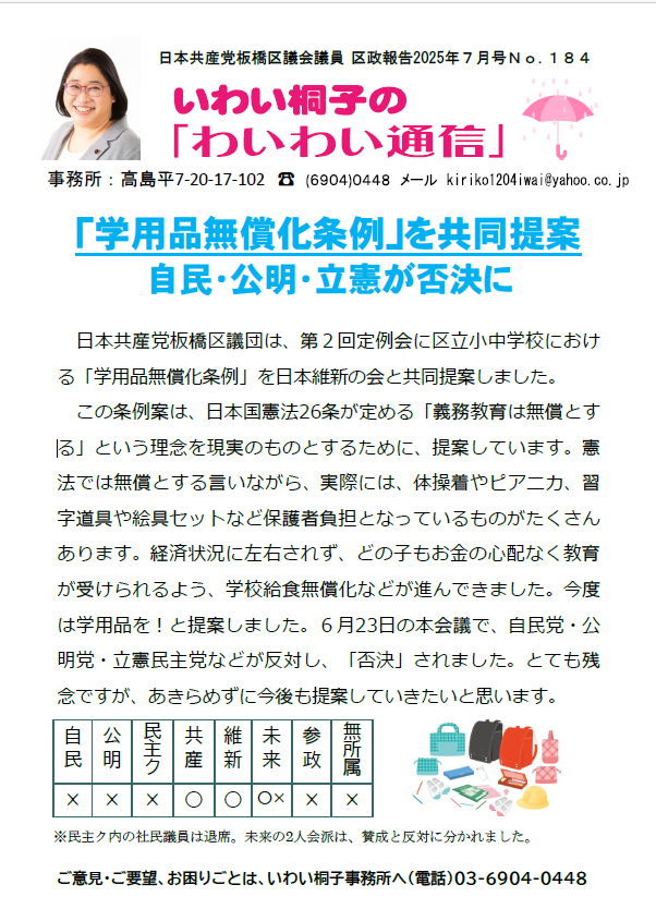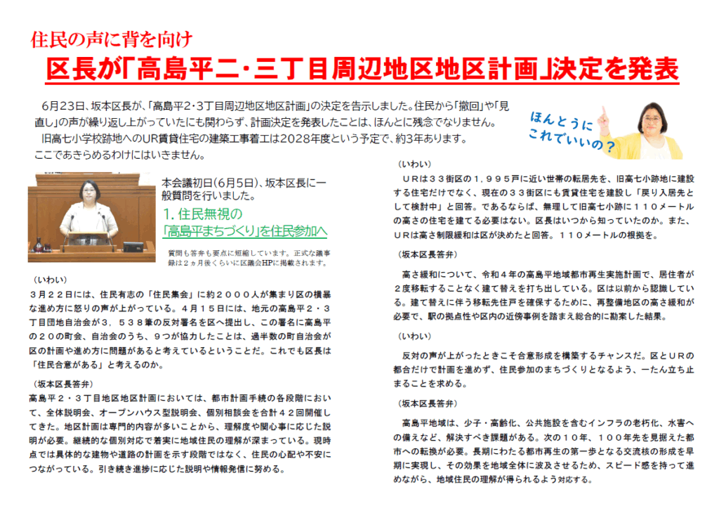 本日(2025年10月14日)、陳情第113号「高島平2・3丁目周辺地区 地区計画の対話型合同説明会を求める陳情」に賛成の立場で討論を行いました。 陳情は、計画に対する説明を求めているだけです。日本共産党、いたばし未 ...