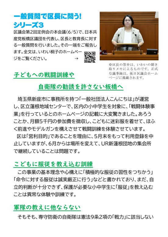 本日(2025年10月14日)、陳情第113号「高島平2・3丁目周辺地区 地区計画の対話型合同説明会を求める陳情」に賛成の立場で討論を行いました。 陳情は、計画に対する説明を求めているだけです。日本共産党、いたばし未 ...