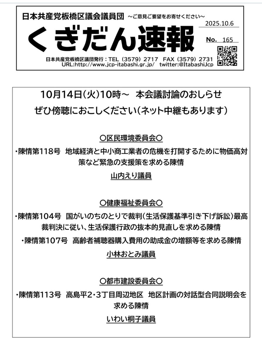 今日の本会議で区長と教育長に対し一般質問を行いました。 「非核三原則を堅持せよと国に求めよ」と質問。区長は「国の動きを注視する」というけど、注視してる場合じゃない。 #いわい桐子 #日本共産党板橋区議団
