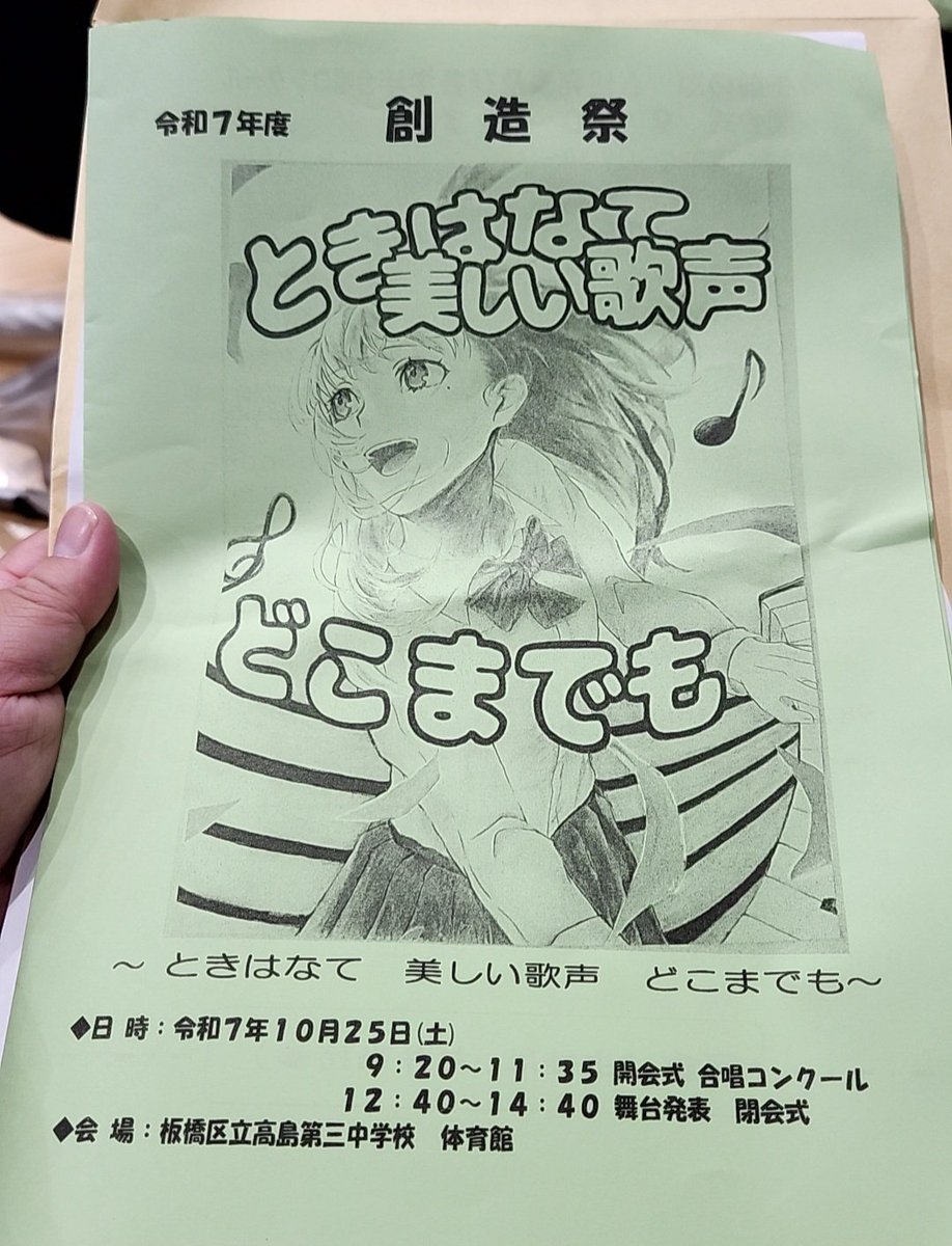中学生が歌う姿と、まっすぐな声がとても素敵でした。雨の中の高島第三中学校の創造祭。やっぱり合唱が好きです。懐かしい歌も。舞台の看板も手づくり感が素敵でした。