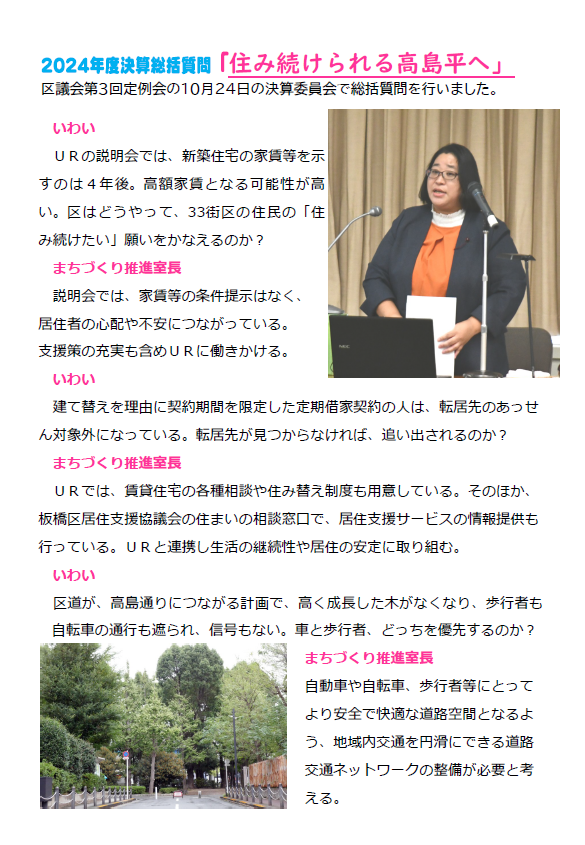 本日(2025年10月14日)、陳情第113号「高島平2・3丁目周辺地区 地区計画の対話型合同説明会を求める陳情」に賛成の立場で討論を行いました。 陳情は、計画に対する説明を求めているだけです。日本共産党、いたばし未 ...