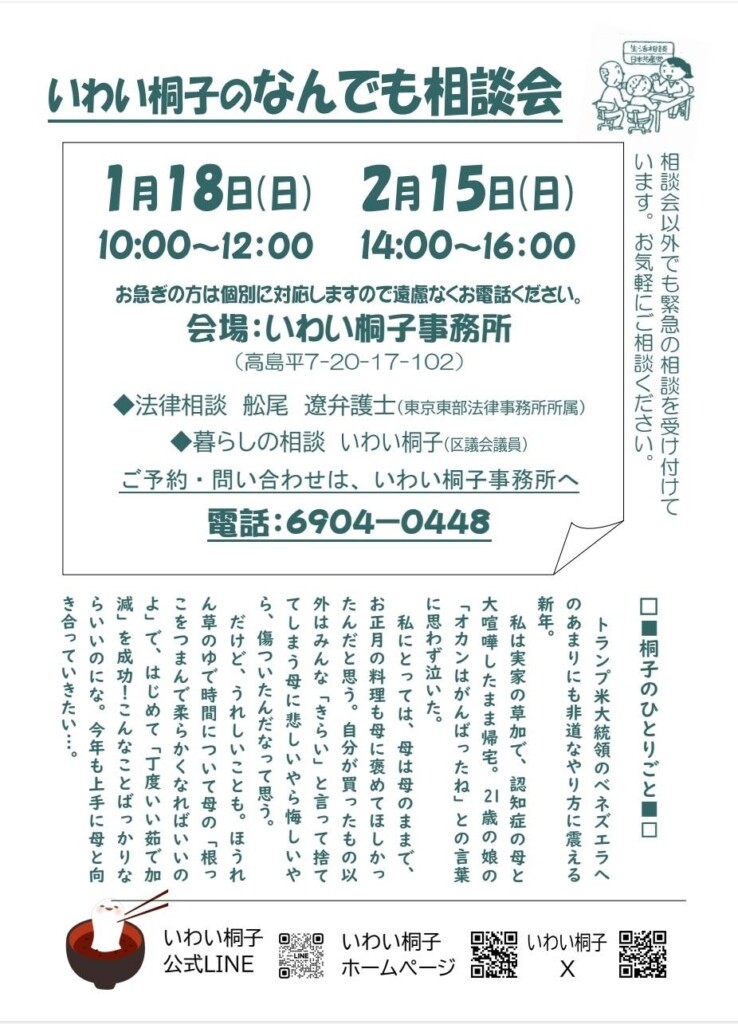 いわい桐子事務所(03-6904-0448)にお問い合わせください。