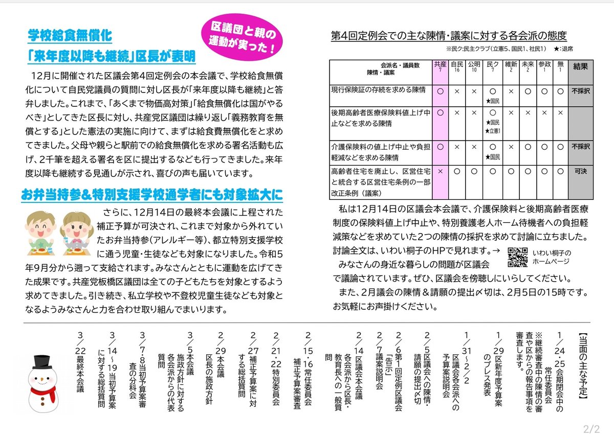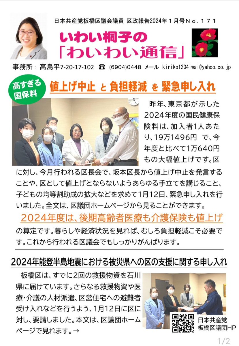 毎月恒例の生活相談会は、12月20日(土)14:00~16:00、1月18日(日)10:00~12:00に行います。事前予約性です。いわい桐子事務所(電話03-6904-0448)にお問い合わせください。