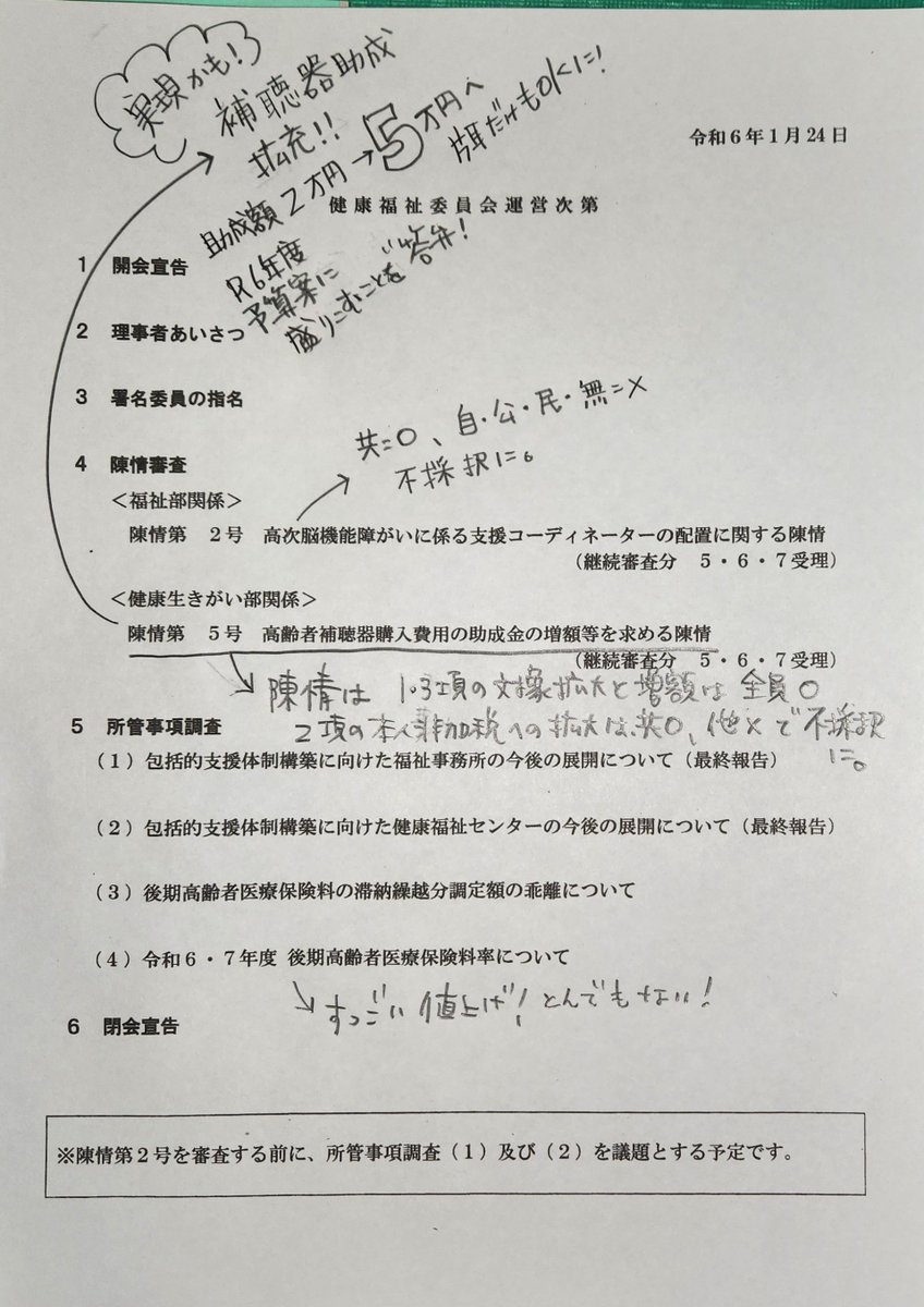 陳情審査に対し高齢者補聴器購入費助成の拡充の報告がされ、助成額を3万円UP❗片耳もOK❗が新年度予算案に盛り込まれました。