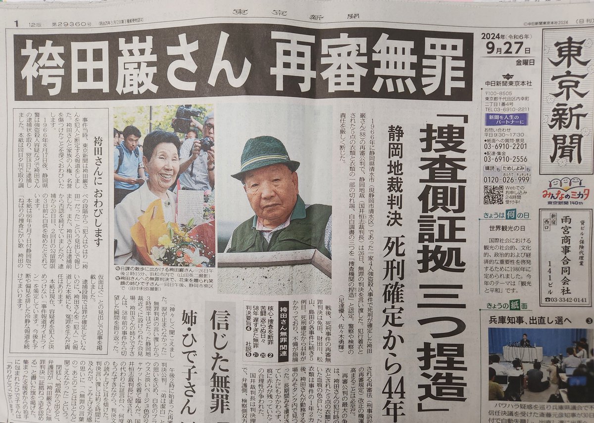 昨日の「袴田さん再審無罪判決」のニュースに思わず「やった!」と。