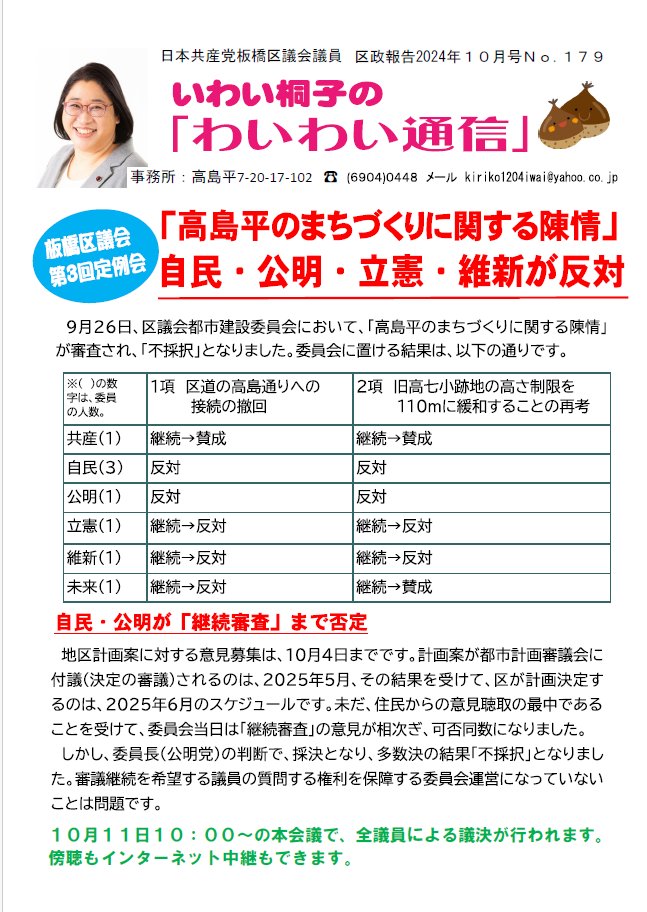 本日10時から年内最後の区議会本会議です。 区議会HPからネット中継もありますので、ぜひご覧ください。 #日本共産党板橋区議団 #いわい桐子