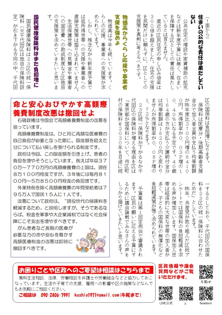 12月9日、清川まなみくらしの相談室長と一緒に、樋口高顕区長に対して2026年度予算要望をおこないました。予算要望はこの間とりくんだ区政アンケートなどに寄せられた声を中心に、福祉、子育て・教育、まちづくり、環境など31 ...
