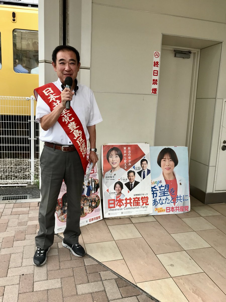 今朝のおはよう宣伝は東長崎駅北口です。猛暑は去ったようです。支部のみなさん4名と区議団ニュースに私のレポート折り込み配布しました。