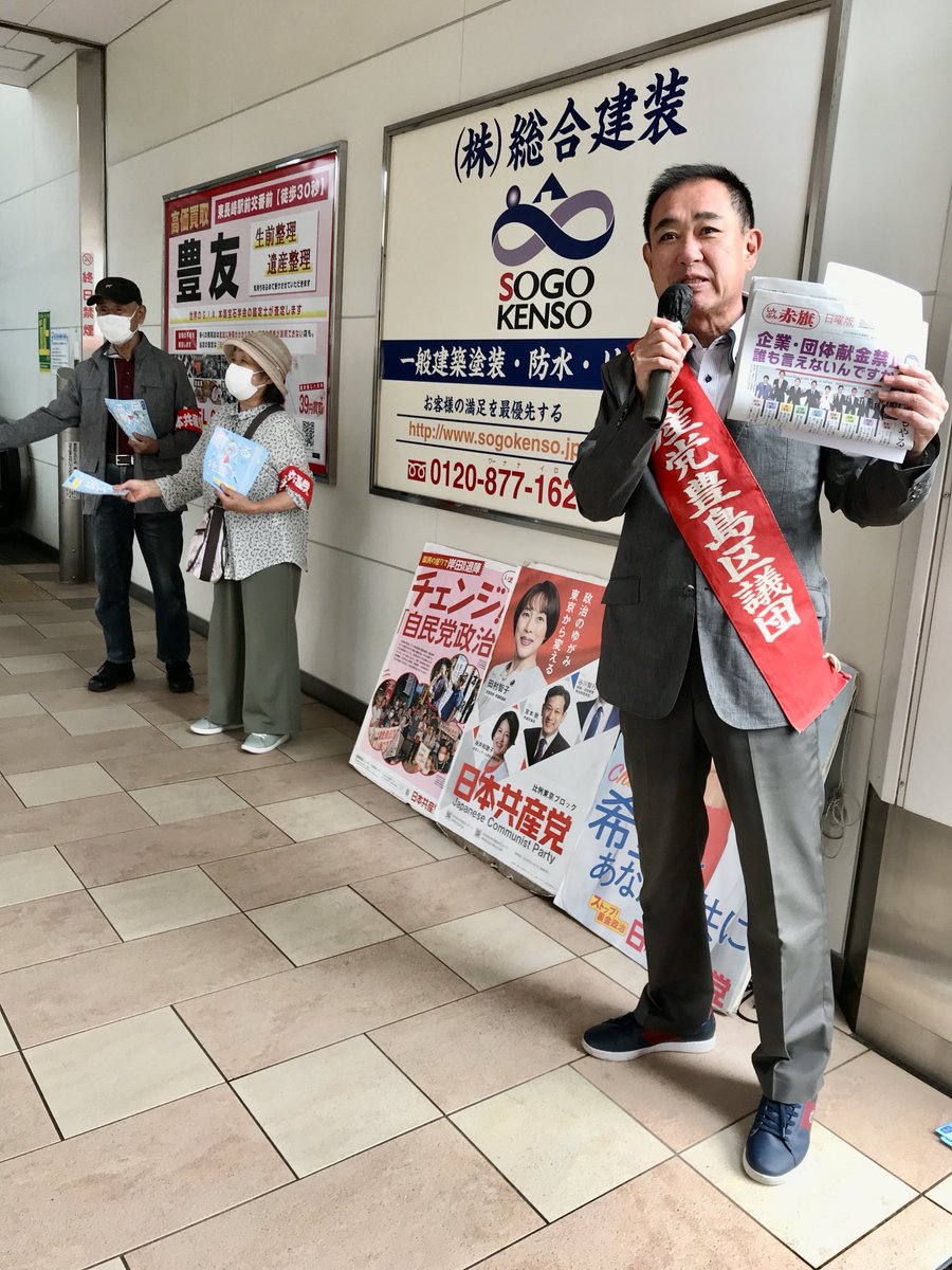 今朝のおはよう宣伝は、東長崎駅南口です。支部のみなさんと総勢6名で、出来立ての都委員会作成の #日本共産党 パンフ配布しながら支持を呼びかけました。
