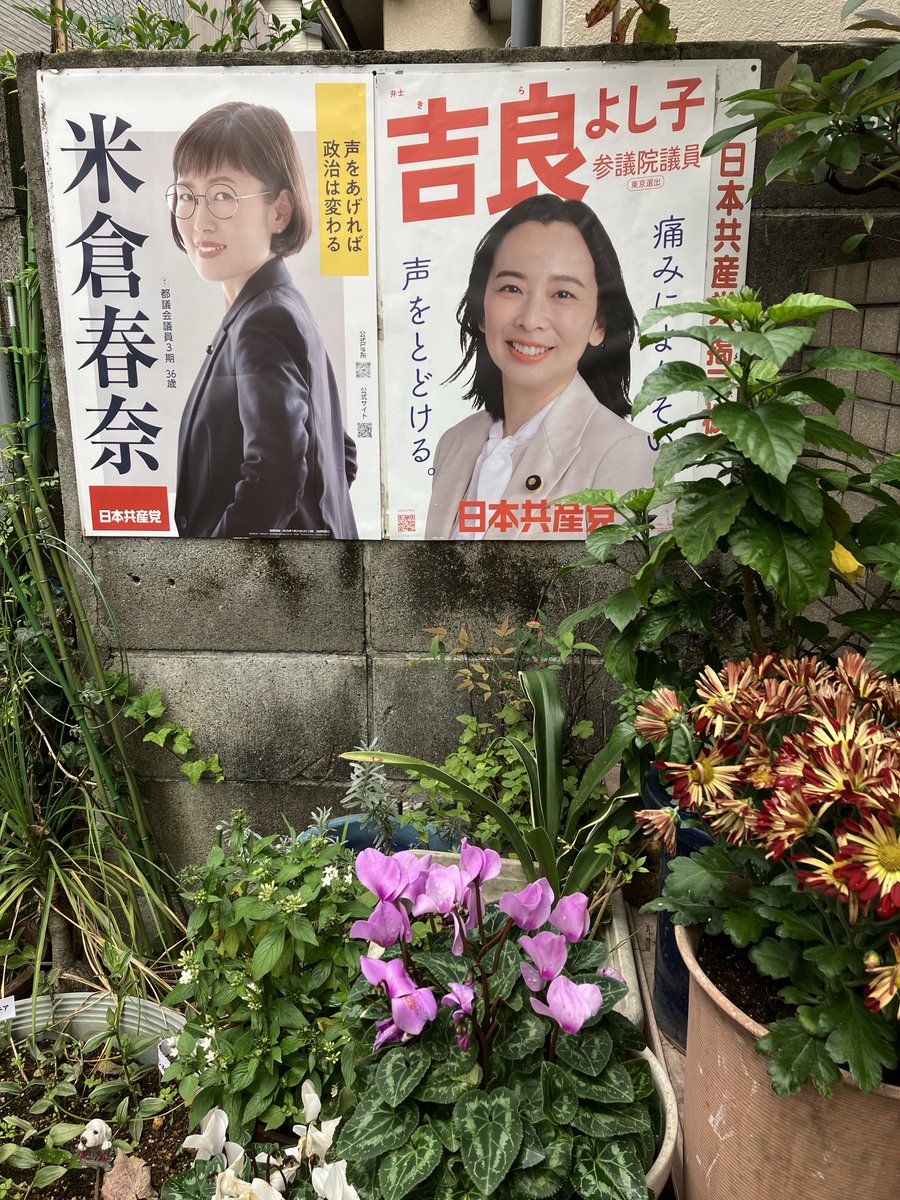 来年は都議選、参議院選挙になります。米倉春奈都議の新しいポスター貼り出しました。