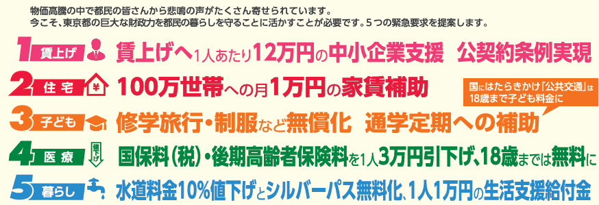 更に金子区議は、党区議団が実施した区民アンケートに寄せられた「社会保険料、税金が高すぎ。稼いでも1/3近く持っていかれるので消費する気も起きない」(20代・正社員)との声を紹介し、若者の経済自立が政治によって阻まれていると指摘。困難を取り除くため、国は消費税廃止を目指し緊急減税する等の決断をするべきで、自治体も必要な施策を展開するべき要求しました。